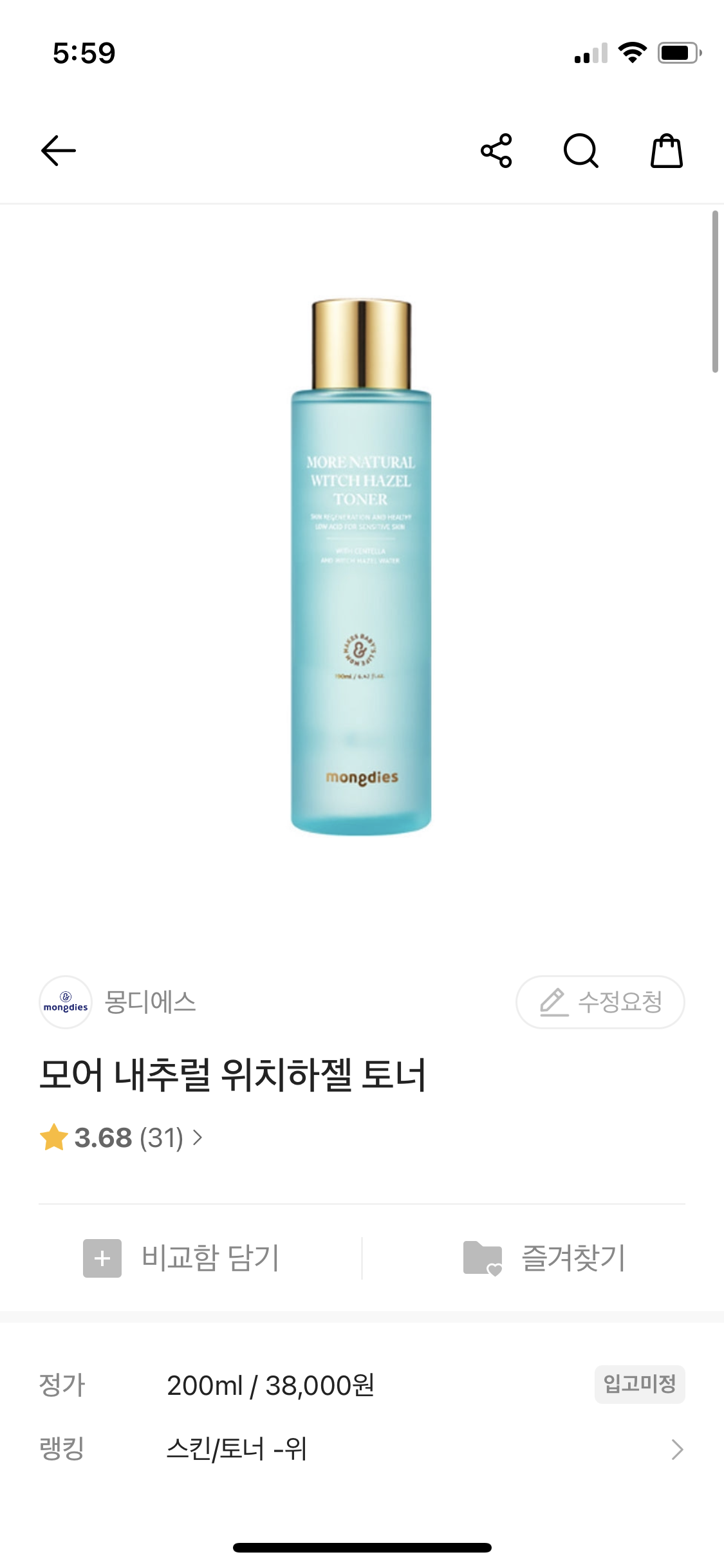 몽디에스 모어 내추럴 위치하젤 토너 | ㅇ |