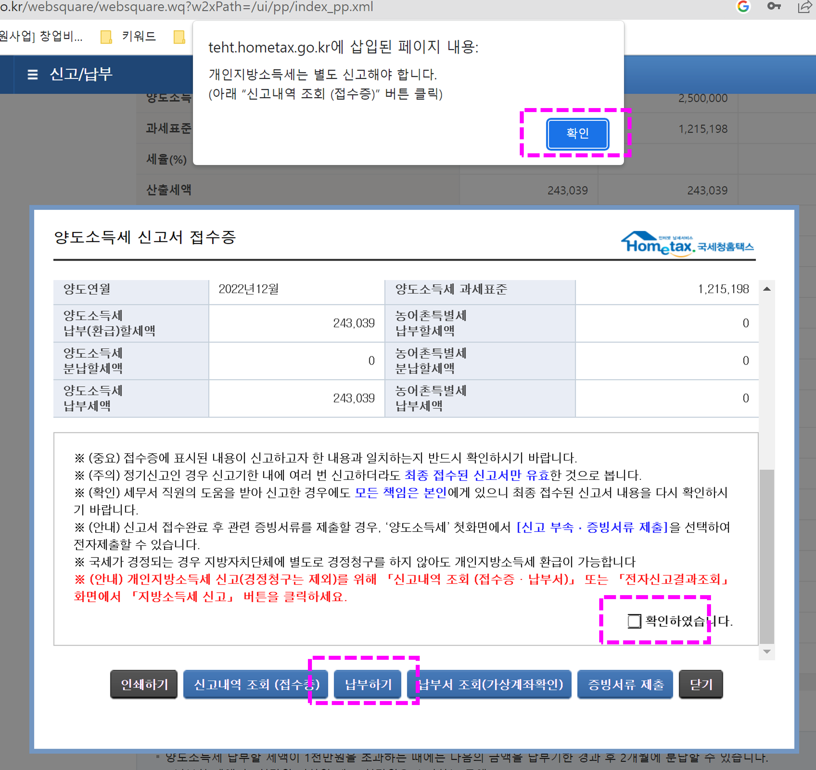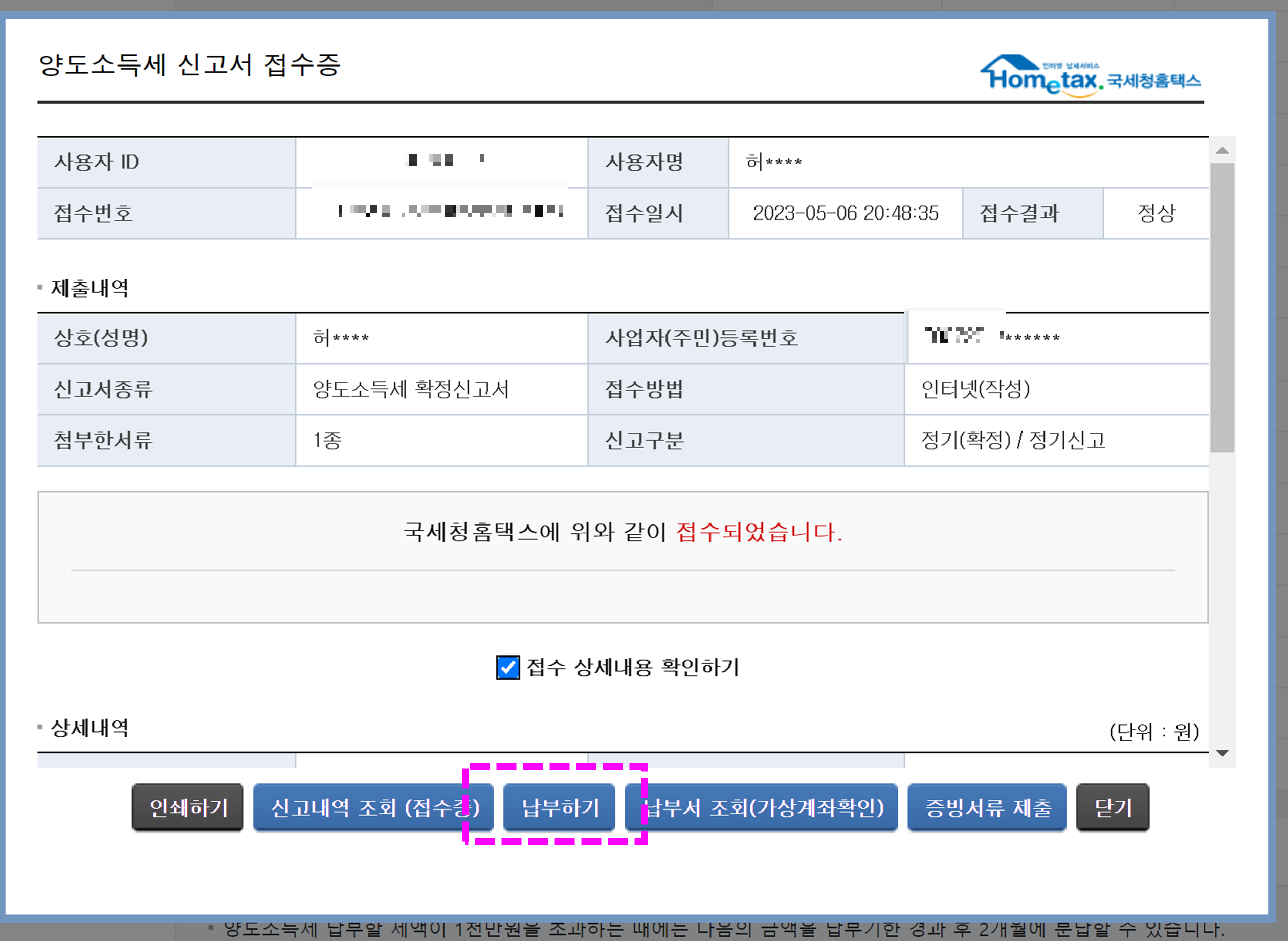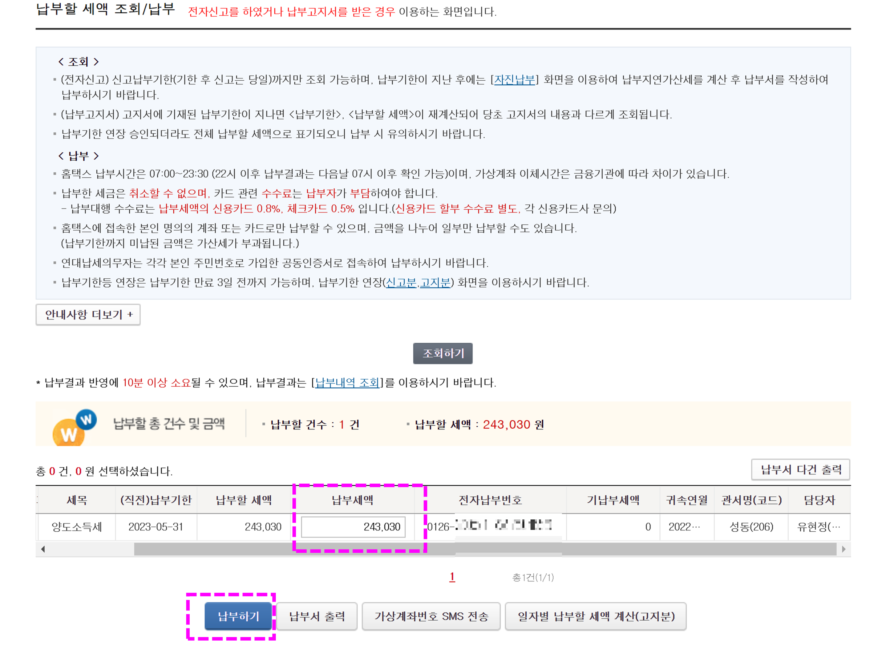 결제화면에서 결제 완료하면 세금 납부 완료!!