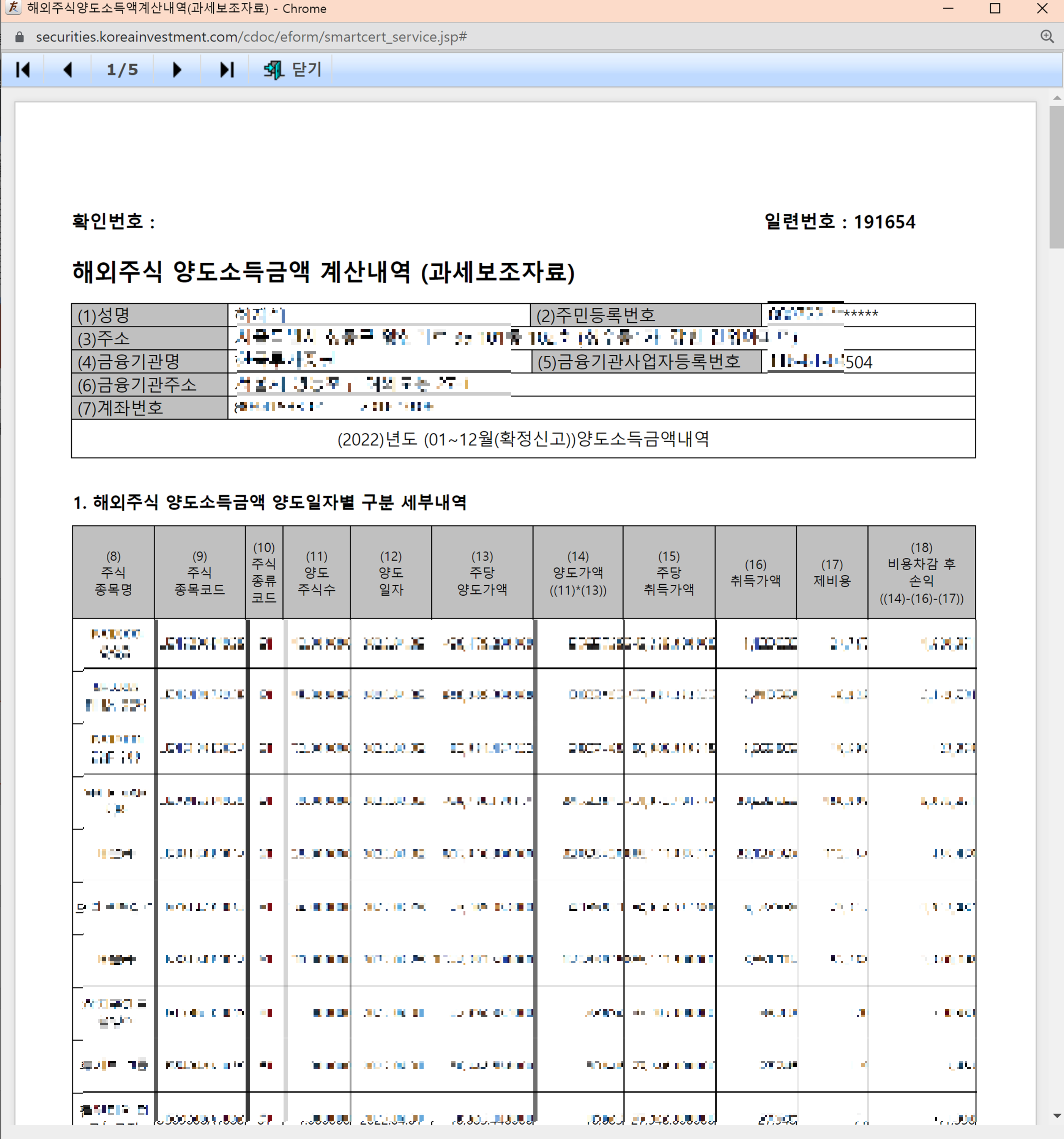 5. 한국투자증권 해외주식 거래내역서 뽑기
