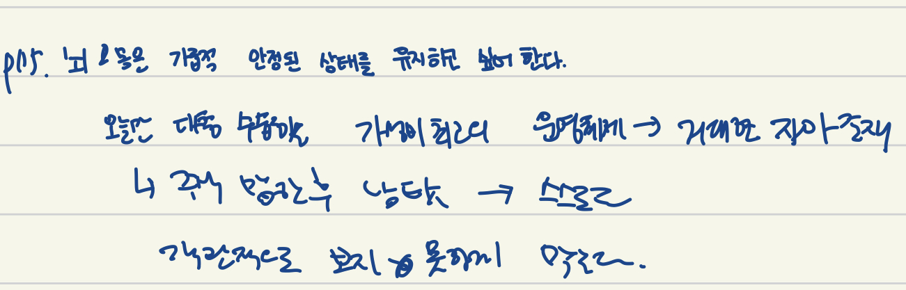 우리는 왜이렇게까지 진실을 받아들이기 힘들어할까? (생략) 우리의 뇌는 우리의 몸과 마찬가지로 가급적 안정된 상태를 유지하고 싶어하기 때문이다. 급한 문제에는 오래 생각할 필요 없이 바로 반응하고, 별로 중요하지 않는 문제에는 대충대충 둘러대면서 뇌는 가급적 적은 에너지로 많은 일을 처리한다. (p 74)